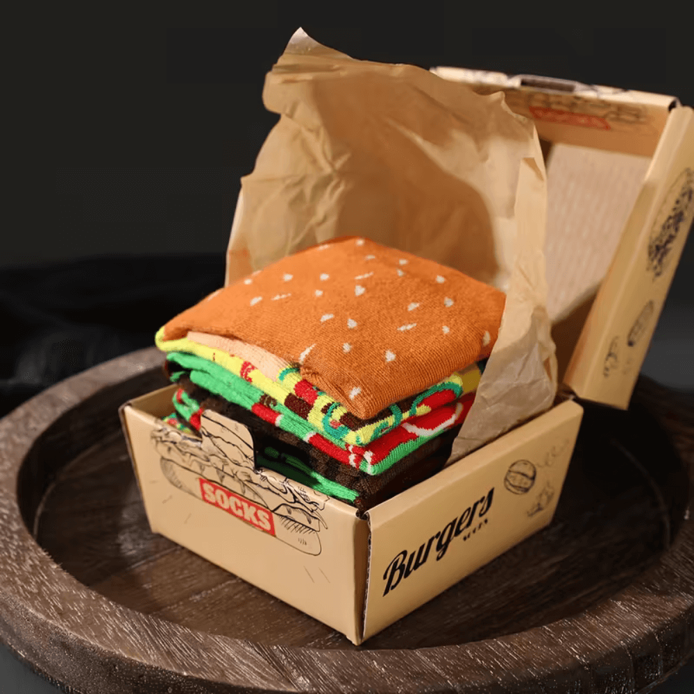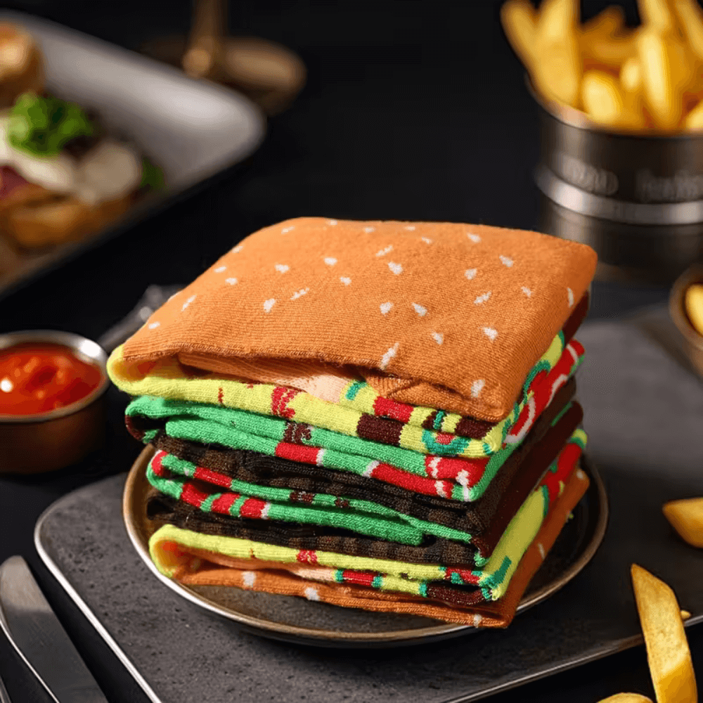 A hamburgeres zokni azoknak készült, akik hiszik, hogy az élet jobb egy csipet humorral – és egy stílusos lépéssel.