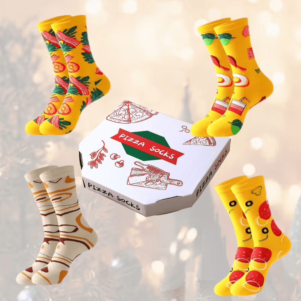 Ha azt hitted, már mindent láttál… itt a bizonyíték, hogy a pizza még a lábadon is jól áll! Ez a 4 párból álló pizzás zokni szett olyan valósághűen van összehajtogatva, hogy első ránézésre bárki igazi pizzaszeletre gondol. A csomagolás pedig? Természetesen pizzás doboz, ahogy kell – épp ezért lesz ellenállhatatlan meglepetés ajándék.