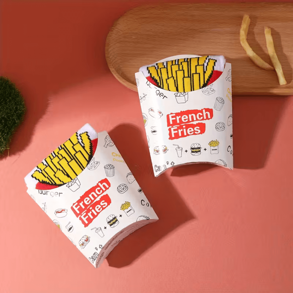 Ha van étel, ami minden helyzetet jobbá tesz, az a sült krumpli. Most pedig végre a lábadra is felveheted! Ez a közép szárú, vidám zokni úgy néz ki, mintha egy gyorséttermi krumplis dobozból pattant volna elő – nem véletlen, hiszen pont ilyen kreatív csomagolásban érkezik. Már kibontani is élmény!
